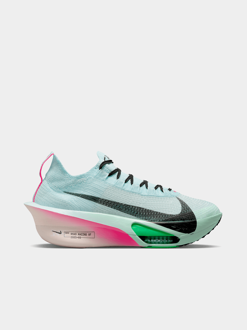 Fine-tuned for marathon speed, the Alphafly 3 helps push you beyond what you thought possible. Three innovative technologies power your run: a double dose of Air Zoom units helps launch you into your next step; a full-length carbon-fibre plate helps propel you forwards with ease; and a heel-to-toe ZoomX foam midsole helps keep you fresh from start to 26.2. Time to leave your old personal records in the dust.